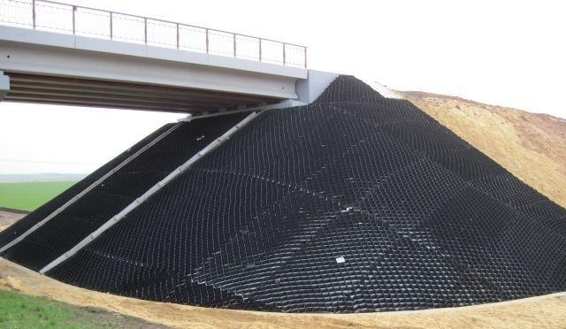 - для укрепления откосов земляного полотна автомобильных и железных дорог;